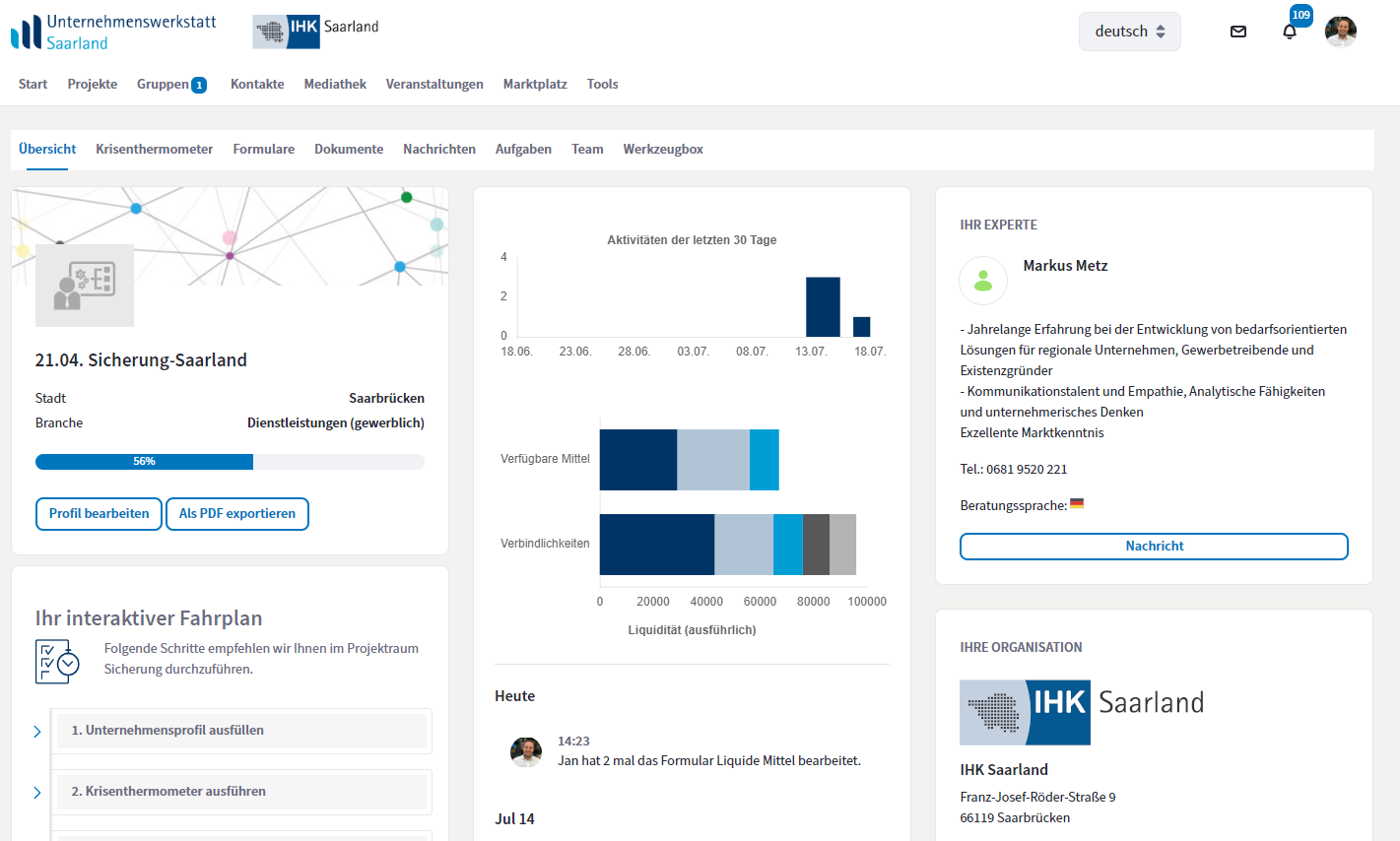 Nutzen Sie den Projektraum Sicherung und erhalten Sie eine aktuelle Standortbestimmung, wie es um die wirtschaftliche Situation in Ihrem Unternehmen steht.