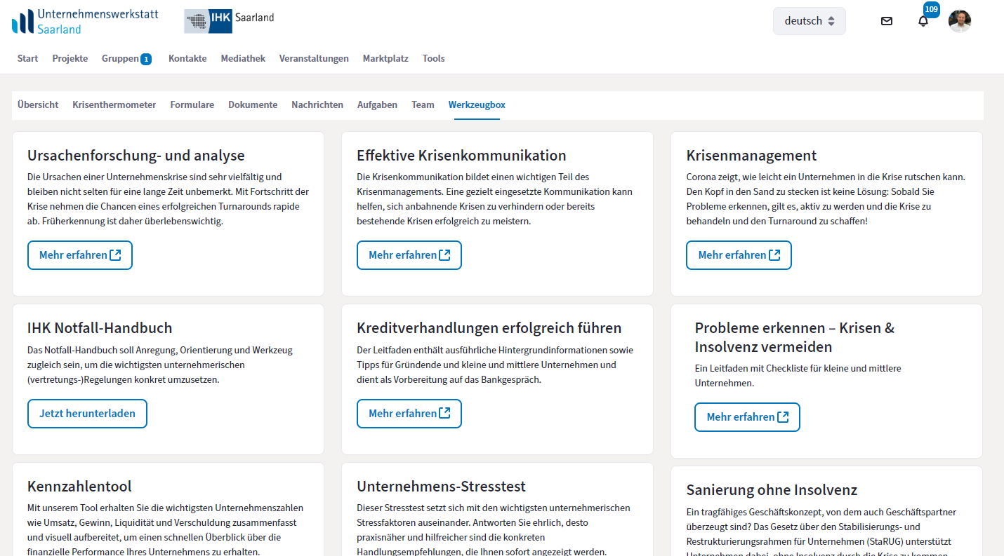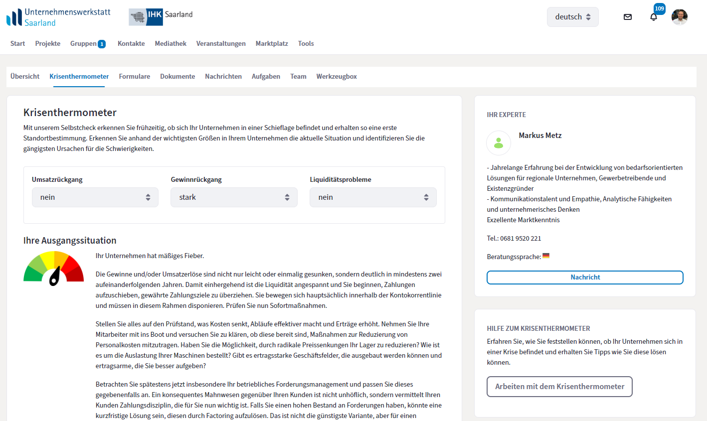 - dem Krisenthermometer, einem IHK-Tool für eine Ersteinschätzung,