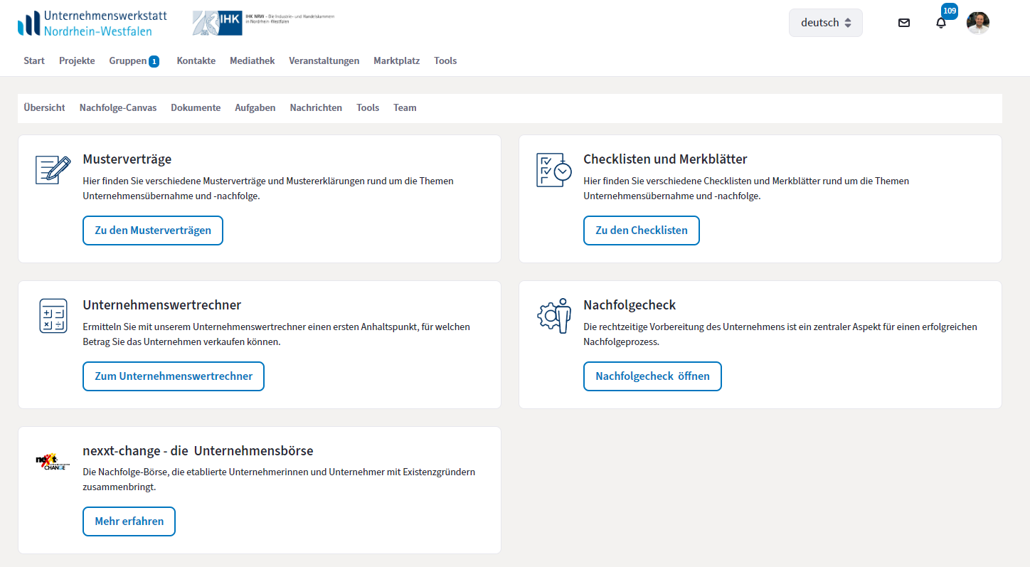 Nutzen Sie den Projektraum Nachfolge und planen Sie die Übergabe Ihres Unternehmens oder die Übernahme eines neuen Unternehmens.