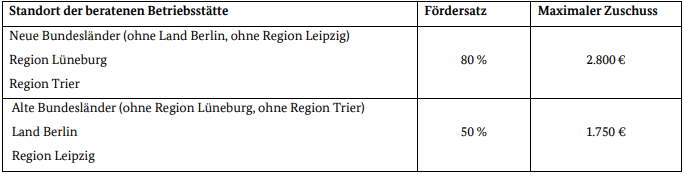 Die Höhe der Förderung ist abhängig von den Standort Ihrer Betriebsstätte: